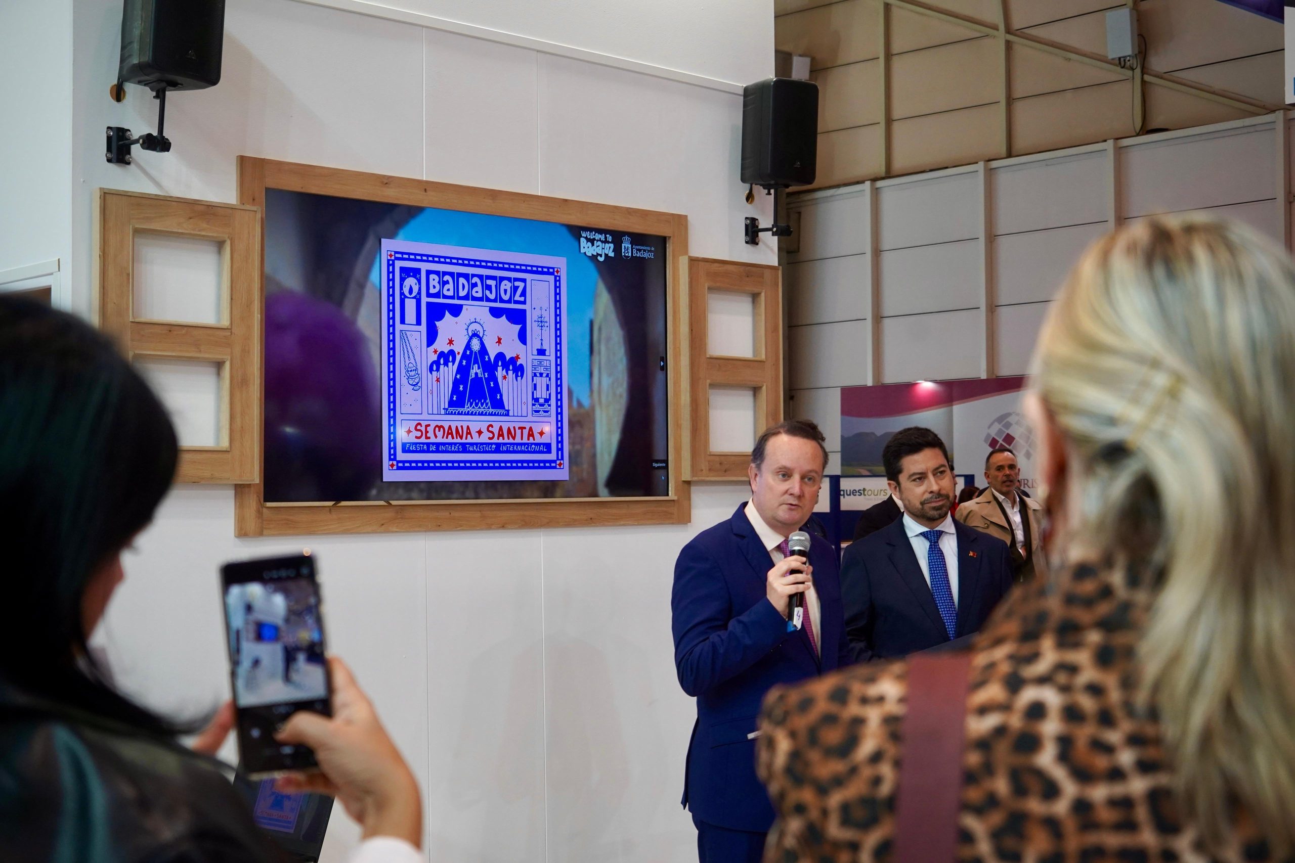Los concejales delegados Rubén Galea y José Antonio Casablanca han presentado este miércoles en el stand de la Junta de Extremadura la oferta turística de la ciudad en este 2026 con la Semana Santa de Badajoz, Fiesta de Interés Turístico Internacional, como principal protagonista. Durante todo el año los visitantes procedentes del país vecino suponen dos tercios del turismo internacional a las oficinas municipales de turismo y monumentos de la ciudad.